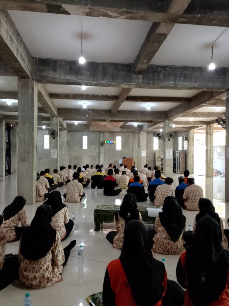 Khotmil Qur’an kali ini mengambil tema ” Menghidupkan Jiwa, Menyucikan Hati dengan Al- Qur’an jelang Ramadhan. Dalam pengarahannya, Guru Agama Agus Jamal, SPd. menyampaikan terima kasih kepada seluruh siswa atas kebersamaan yang telah dibangun selama ini. “semoga sampai kapanpun kita selalu kompak”, tuturnya.