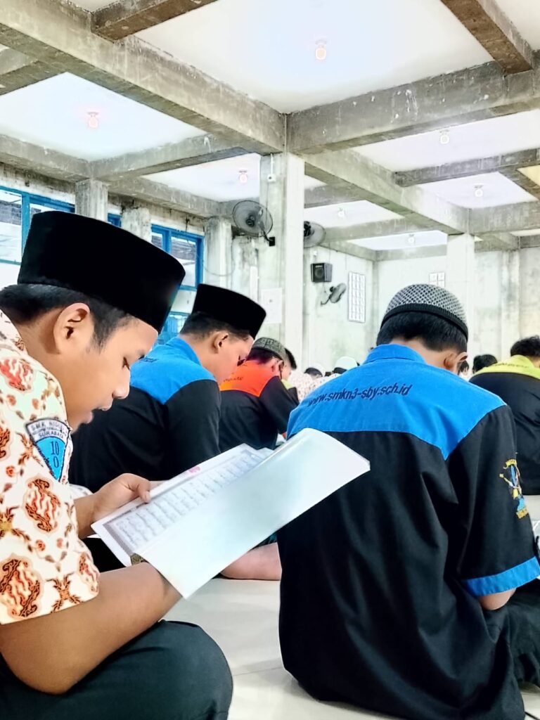 Surabaya (Kamis, 12/02/2026), SMKN 3 Surabaya melaksanakan kegiatan KHOTMIL QUR’AN untuk menyambut datangnya bulan suci Ramadhan 1447H di Masjid At Taqwa mulai pukul 08.00 WIB sampai selesai. Kegiatan ini diikuti oleh perwakilan dari tiap- tiap kelas.