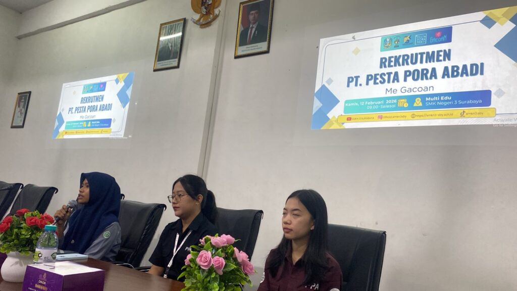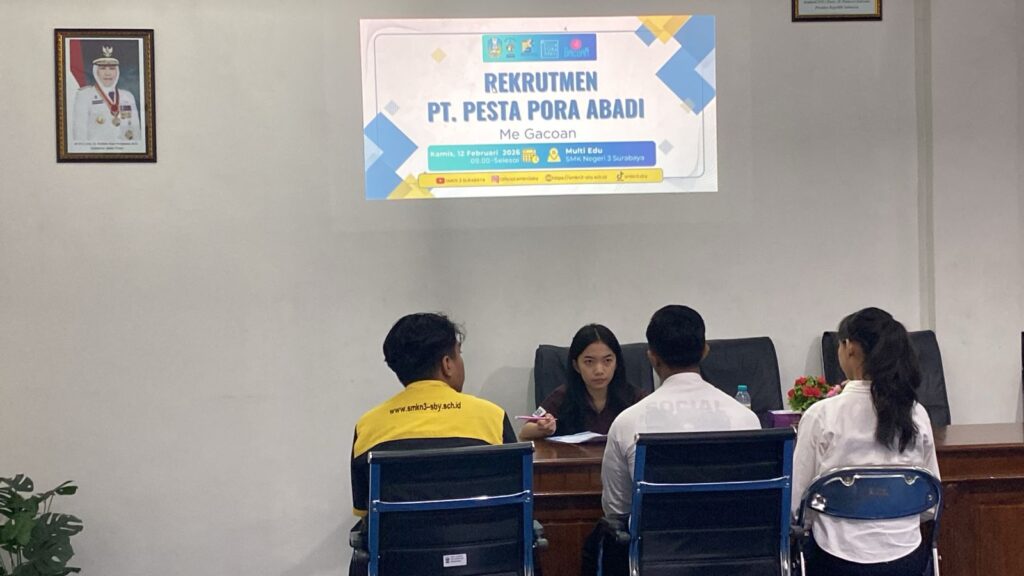 Surabaya (Kamis, 12/02/2026) SMKN 3 Surabaya mengadakan acara Rekrutmen yang diadakan oleh PT. Pesta Pora Abadi, perusahaan ternama yang dikenal sebagai Gacoan di industri ini. Acara ini diikuti oleh Alumni SMKN 3 Surabaya yang antusias untuk memulai perjalanan karir mereka.