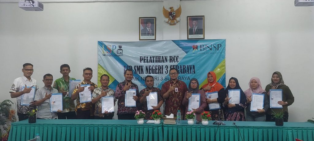 Kegiatan Peningkatan Sertifikasi Kompetensi Aseaor dan Sertifikasi Ulang Asesor di SMKN 3 Surabaya dilaksanakan di Ruang Meeting pada hari Sabtu- Minggu (17 – 18/05/2025). Kegiatan ini diikuti oleh beberapa Guru Produktif Jurusan TKRO, TAV, DPIB, TPM, TITL dan DKV.